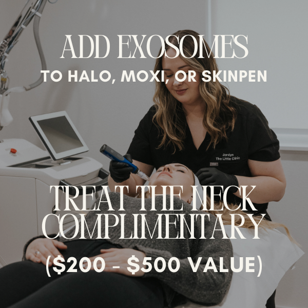 Add Exosomes to HALO, Moxi, or SkinPen and treat the neck complimentary ($200 – $500 value)
