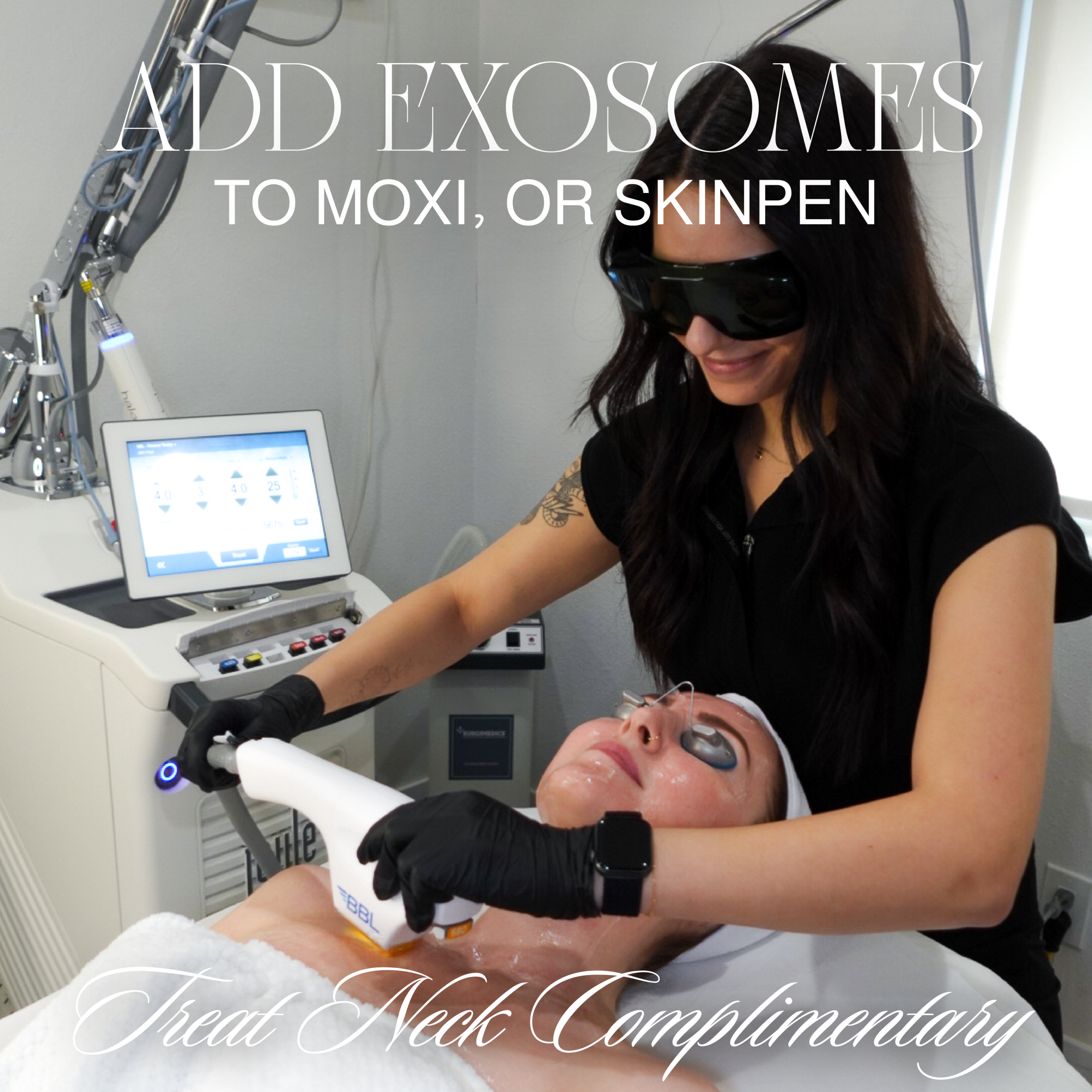 Add Exosomes to MOXI or SkinPen Microneedling and treat the neck complimentary ($150 – $250 value)